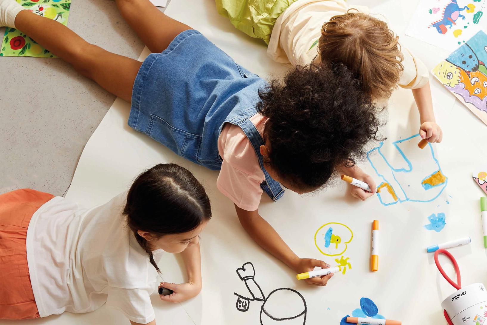 Mały plecak dla dzieci lisek marki mideer w kolorach zielonym, pomarańczowym i żółtym z akcesoriami