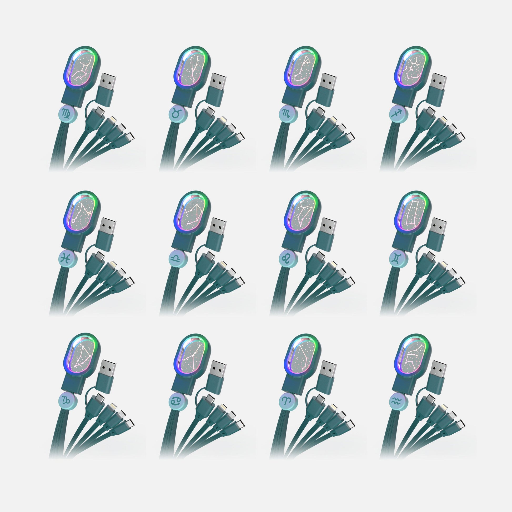 With 5 connectors, the Astro™ cable is compatible with all devices: smartphones, tablets, wireless headphones, and more. Plug it in, and cosmic energy illuminates a constellation representing your astral personality, one of the 12 zodiac signs.