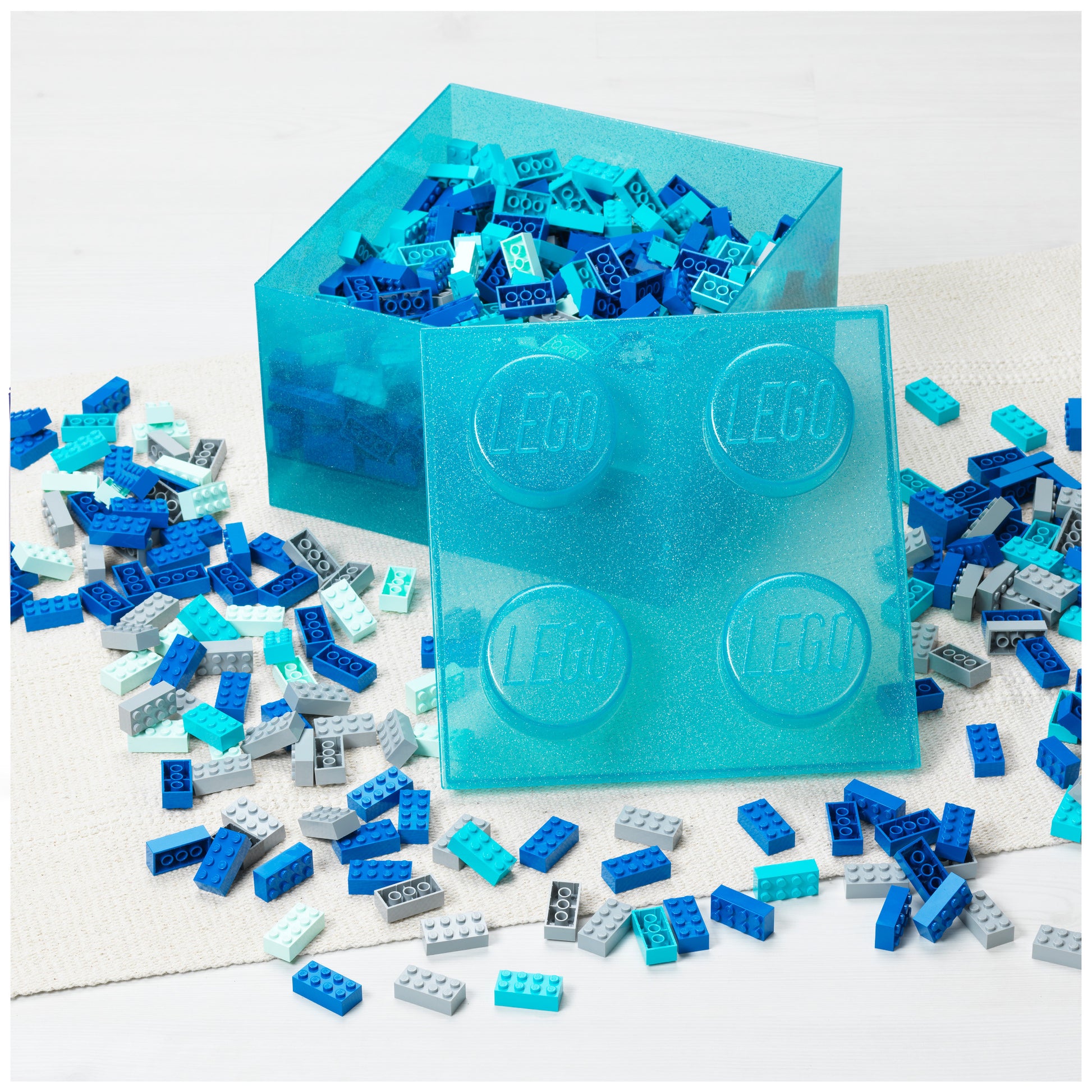 At first glance, it looks like a giant LEGO® brick. But when you lift the lid, you open the door to little childish secrets. Inside: treasures from the floor, favorite figurines, minifigure collections, and everything else that usually "lies in the corner." The bright blue LEGO® Brick 4 container turns tidying up into a fun activity—and it really makes a statement on the shelf.