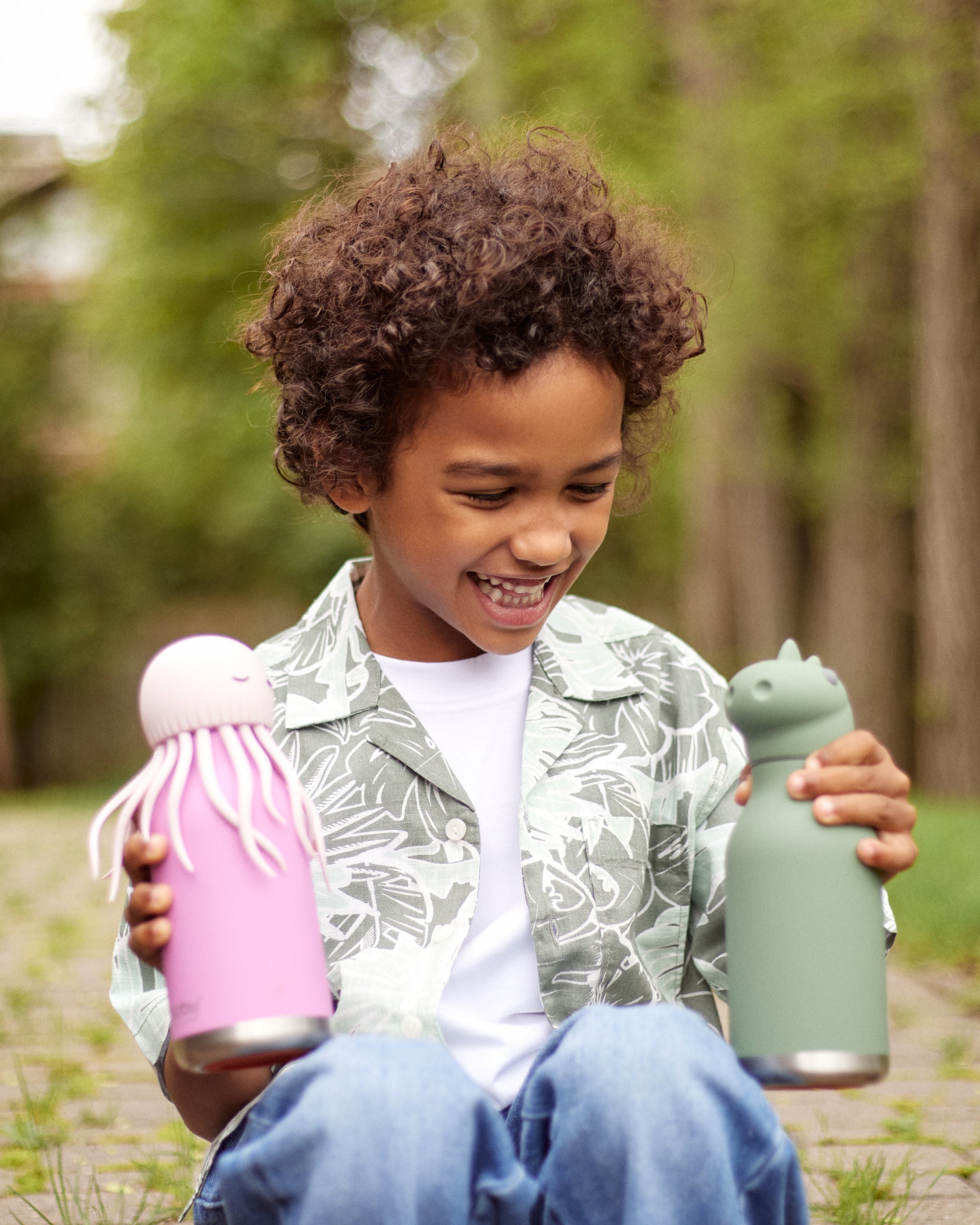Asobu Bestie est une bouteille thermique qui allie confort d'utilisation et design raffiné. Il a été créé en pensant aux enfants, mais il séduira également les adultes qui apprécient les solutions fonctionnelles et esthétiques. Le modèle avec un motif de dinosaure a un couvercle doux au toucher avec un imprimé amusant et une forme pratique qui peut être emporté partout : à l'école, au travail ou en voyage.