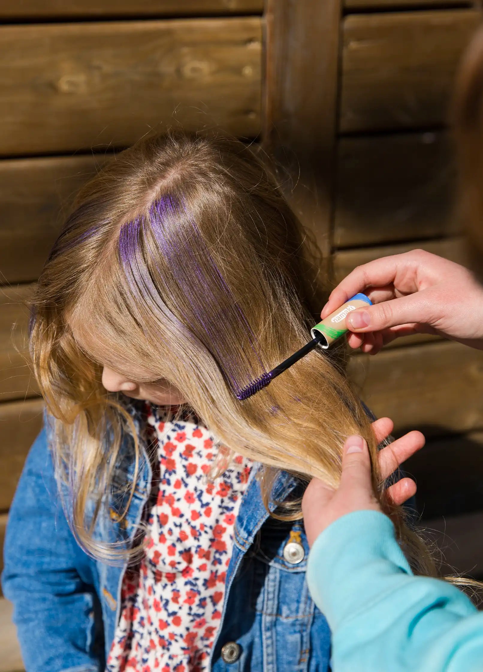 Fioletowa maskara do włosów dla dzieci Yamann w ekologicznej tubce z intensywnym kolorem